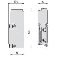 - Корпус электрозащелки в сочетании с различными лицевыми пластинами может использоваться с замками для бронированных дверей при расстоянии между осями ригелей от 28 до 38 мм